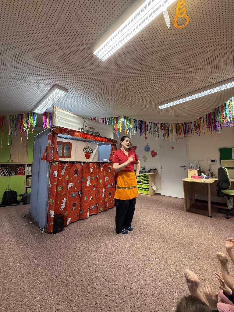 Dnes k nám zavítalo divadélko Koloběžka se svou pohádkou "Jak vyzrát na bacily".